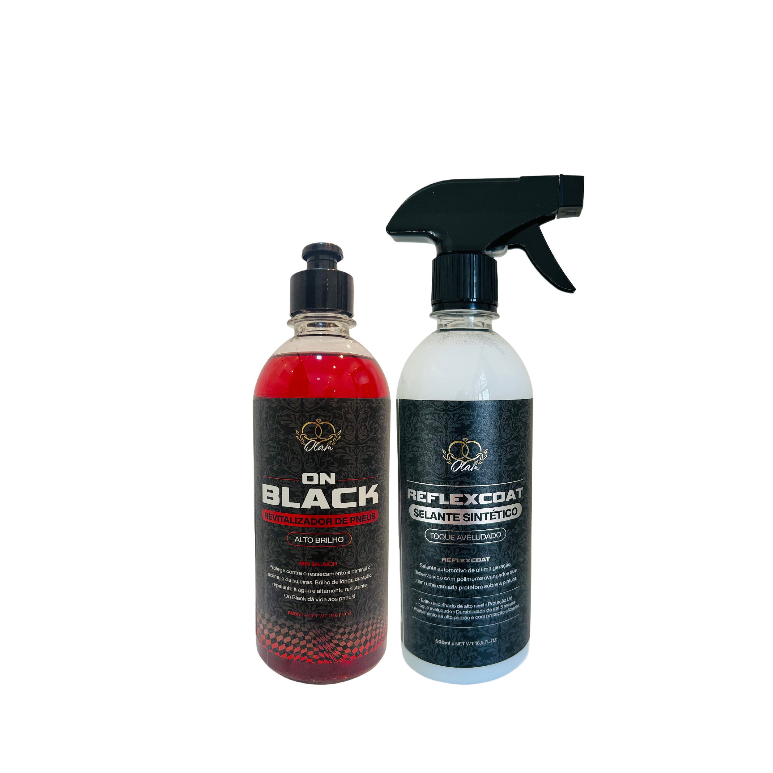 ON BLACK - REVITALIZADOR DE PNEUS ALTO BRILHO COM DURABILIDADE INCOMPARAVÉL. ON BLACK É ULTRA REPELENTE E TEM O TOQUE SECO. ATUALMENTE O NÚMERO 1 DOS PROFISSINAIS DA ESTÉTICA AUTOMOTIVA.